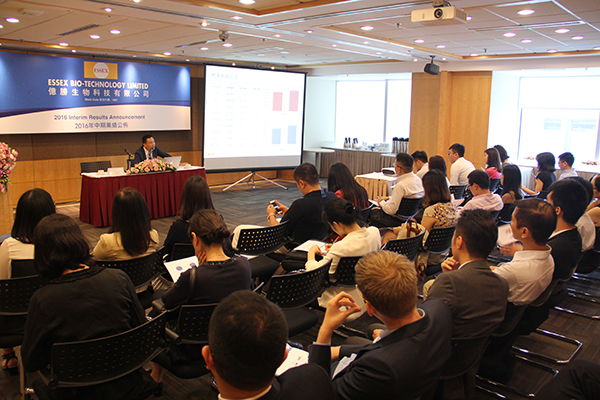 2016年8月8日,亿胜生物科技有限公司于香港regus会议中心举办公司2016年中期业绩发布会。董事总经理方海洲先生出席了本次发布会。