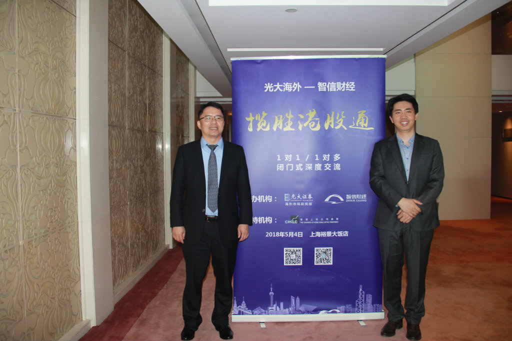 5月4日,“揽胜港股通”大型主题深度交流会在上海裕景大饭店重磅召开,本次交流会由连续两年蝉联“新财富”最佳海外市场研究机构的光大证券海外研究部和国内知名港股财经公关智信财经联合主办,共邀请到港股通中的40家热点上市公司参会。此次闭门高端会议吸引到大量业内金牌机构参与,共有超过200名专业机构投资者的踊跃报名,包括来自近10家险资机构及逾30家公募基金的约80名资深基金经理,其中亦不乏中国人寿、华夏基金、博时基金等重量型机构的身影。
