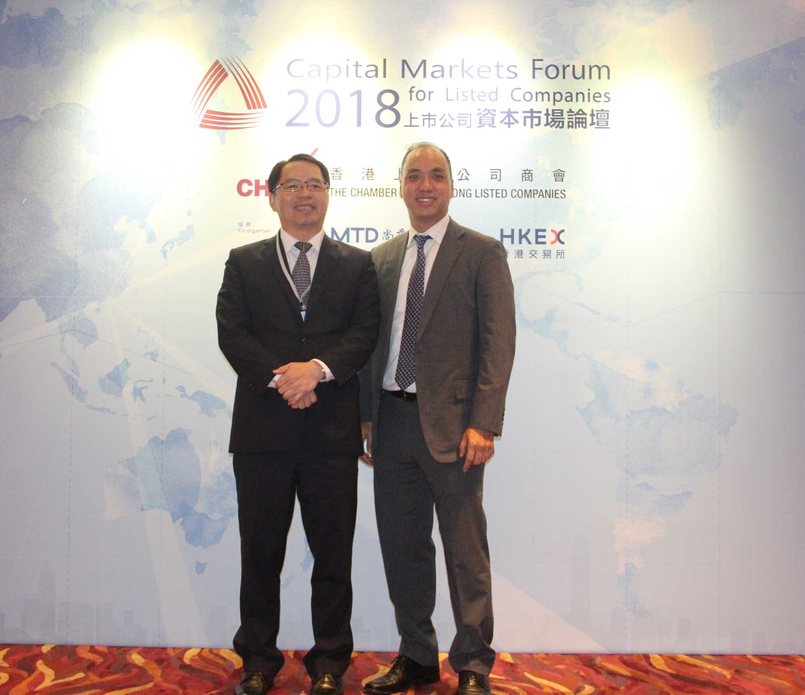 由香港上市公司商会主办,香港交易所全力支持的“2018上市公司资本市场论坛”于4月27日在香港湾仔君悦酒店圆满举办,智信财经为本次活动的支持机构,智信财经董事长郭信麟先生、执行董事陈宇虹女士受邀出席活动